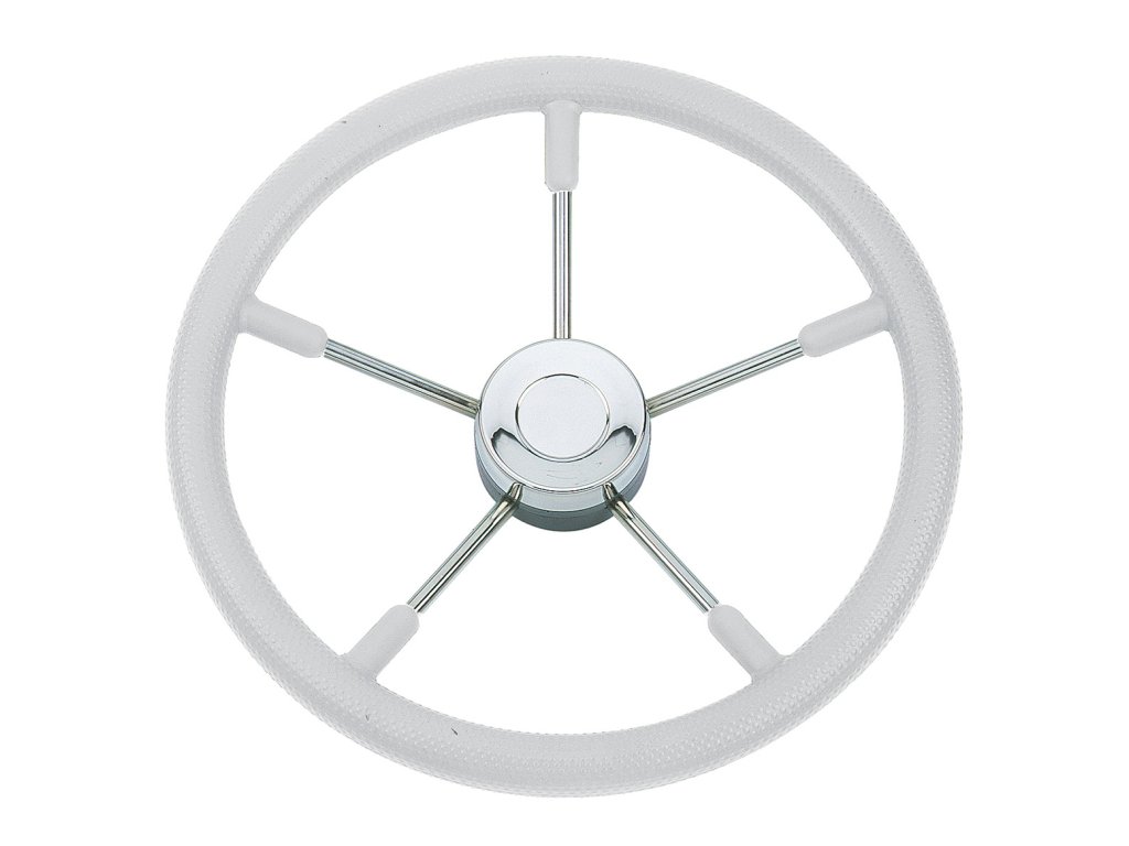 Bílý polyuretanový volant s 5 nerezovými paprsky, průměr 35 cm