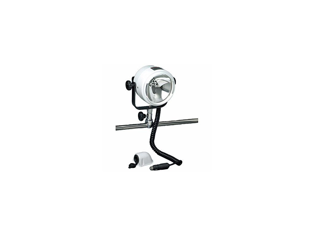 Halogenový hledáček s úchytem na reling lodě. Vyrobeno z UV odolného ABS plastu, držák hledáčku z anodizovaného hliníku a držák na trubku z nerezové oceli. Maximální dosah halogenu je 600 m. Odnímatelné a otočný světlo o 360° s 2 metrovým napájecím 12 V kabelem. Světlo je ve vodotěsném gumovém krytu. Výkon 100 W + 100 W, výška 250 mm, šířka 215 mm. Součástí balení je i zásuvka na 12 V.Doplňkové parametry