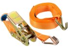 Polyesterový upevňovací popruh s háky a ráčnou. Šíře popruhu 38 mm, celková délka 8 metrů. Maximální nosnost 2000 kg, provozní zatížení 1000 kg, schváleno TUV/GS.