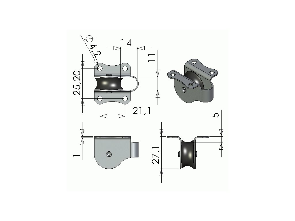 Kladka s kovovými bočnicemi pro vedení lan pod palubu pro maximální průměr lana 8 mm