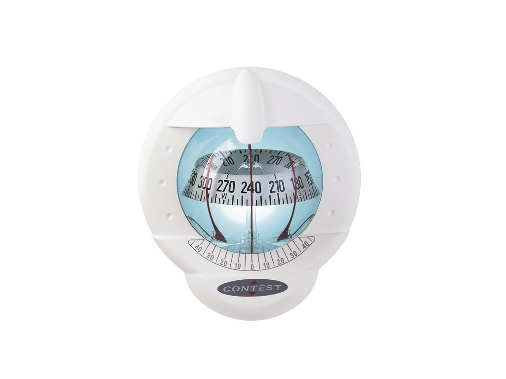 Kompas Plastimo Contest 101, barva bílá, barva rosety bílá pro vertikální zabudovanou montáž. Průměr rosety 100 mm. Barva rosety červená. Barva krytu černá. Je vybaven dvojím měřítkem (horizontální a vertikální) a třemi kontrolními linkami na 45°. Montážní verze pro přímé přepážky. Zvláště vhodné pro plachetnice. Dodává se s 12 V osvětlením a ochranným krytem.Buďte první, kdo napíše příspěvek k této položce.