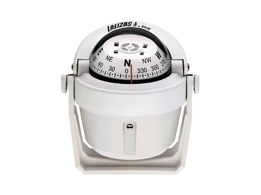 Kompas Ritchie Explorer B-51, barva bílá, barva rosety bílá. Určena pro lodě do 24 stop. Vybaven montážním otočným obloukem, který lze sundat. Průměr kompasové růžice 69,9 mm. Noční osvětlení na 12 V - zelené. Váha 454 g.Doplňkové parametry