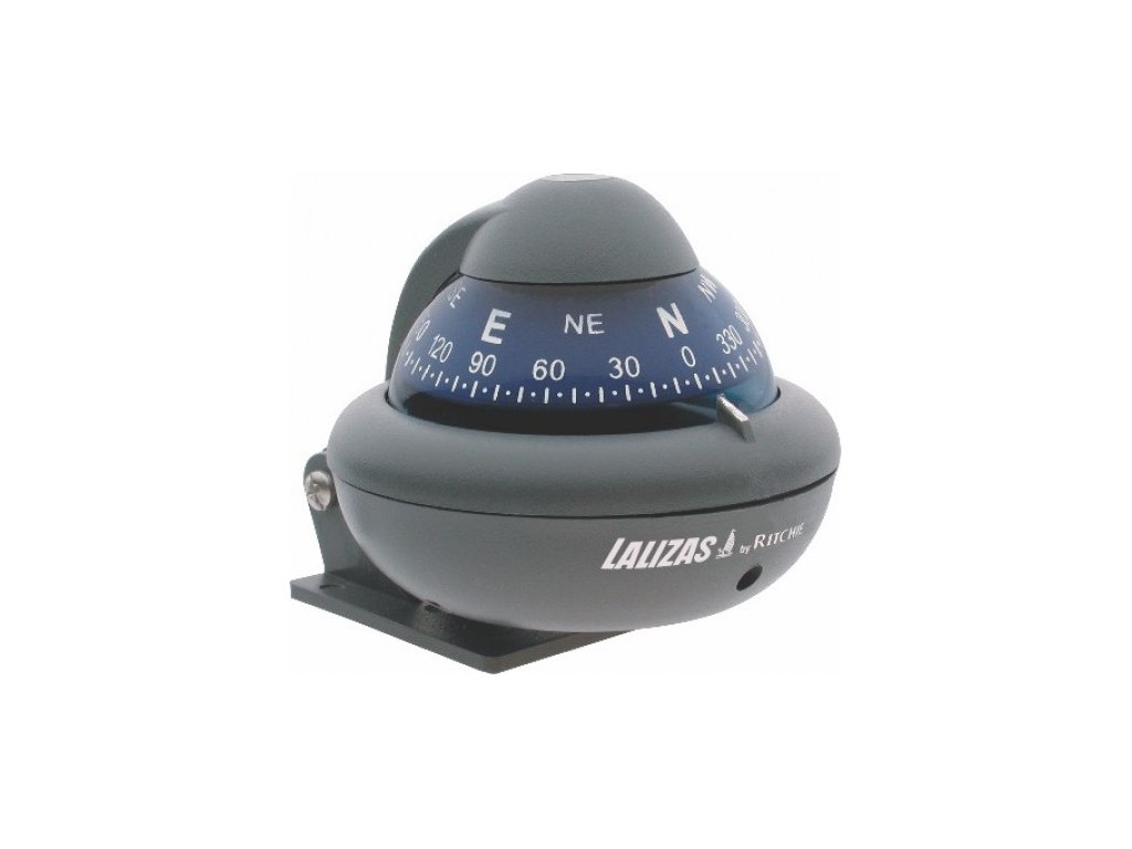 Kompas Ritchie Sport X-10-M, barva šedá, barva rosety modrá. Určena pro lodě do 16 stop. Vybavena otočným a fixačním držákem, pro namontování na svislé, šikmé i vodorovné plochy. Průměr kompasové růžice 50,8 mm. Noční osvětlení na 12 V - zelené. Váha 142 g.Doplňkové parametry