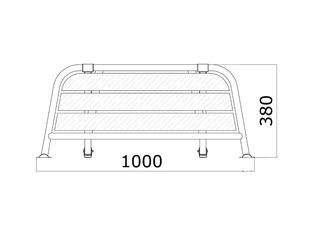 Vyrobeno z leštěné nerezové oceli AISI316 a dřevem Iroko. Nastavitelné upevňovací klouby. Průměr nerezových trubek je 25 mm. Celková šířka je 1000 mm, hloubka je 380 mm.