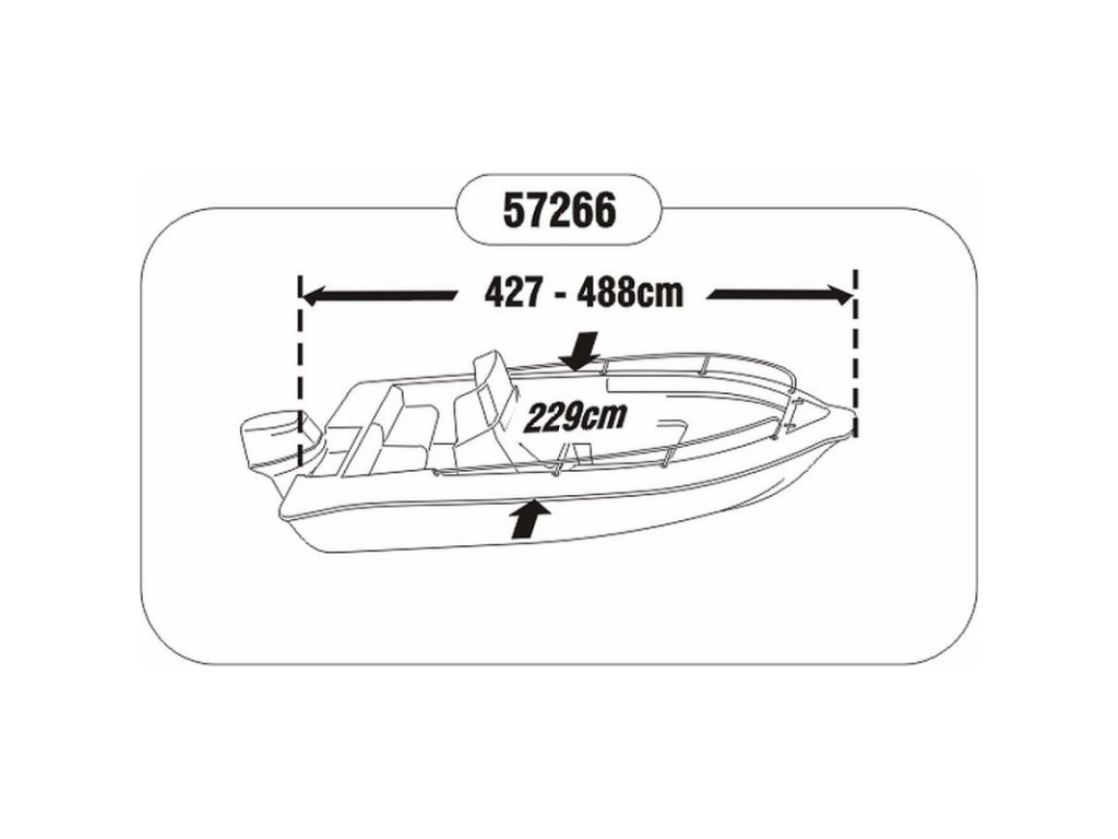 Krycí plachta pro lodě s konzolí délky 427 až 488 cm a šířky včetně konzole 229 cm. Vyrobeno z PA polyesteru 420D. Určeno jako krycí plachta, ideální proti dešti, sluníčku a prachu.