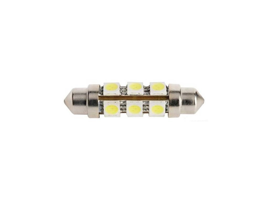 LED sufitka, délka 44 mm. 12 V, Výkon 2W (12 LED). 180 lumenů, 6000 K. Balení obsahuje pár (2 ks).