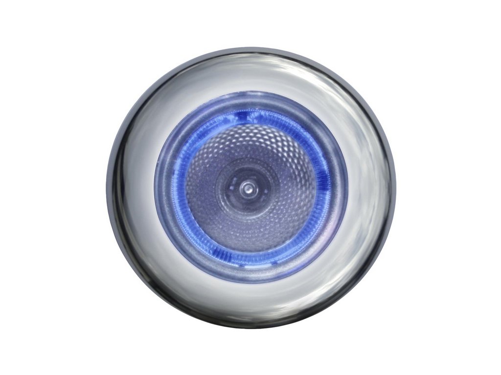 Modré LED světlo značky Hella marine Spot z leštěné nerezové oceli. Průměr 75 mm. Hloubka 41 mm. Multivolt 8 - 28 V.