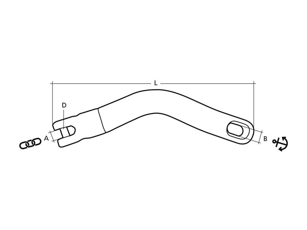 Nerezová spojka TrimFix pro 10 mm řetěz. Vyrobeno z nerezové oceli AISI 316. Rozměry 14 (A) x (14 x 27) (B) x 12 (D) x 310 (L).