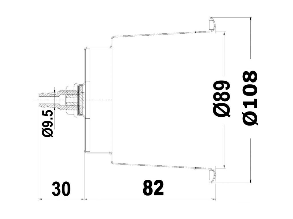 Dvojitý vnitřní průměr 82 a 62 mm pro uložení plechovek nebo lahví, vnější průměr 108 mm, hloubka 111 mm. Uvnitř měkké PVC dno. Vybaveno spodním odtokem.Doplňkové parametry