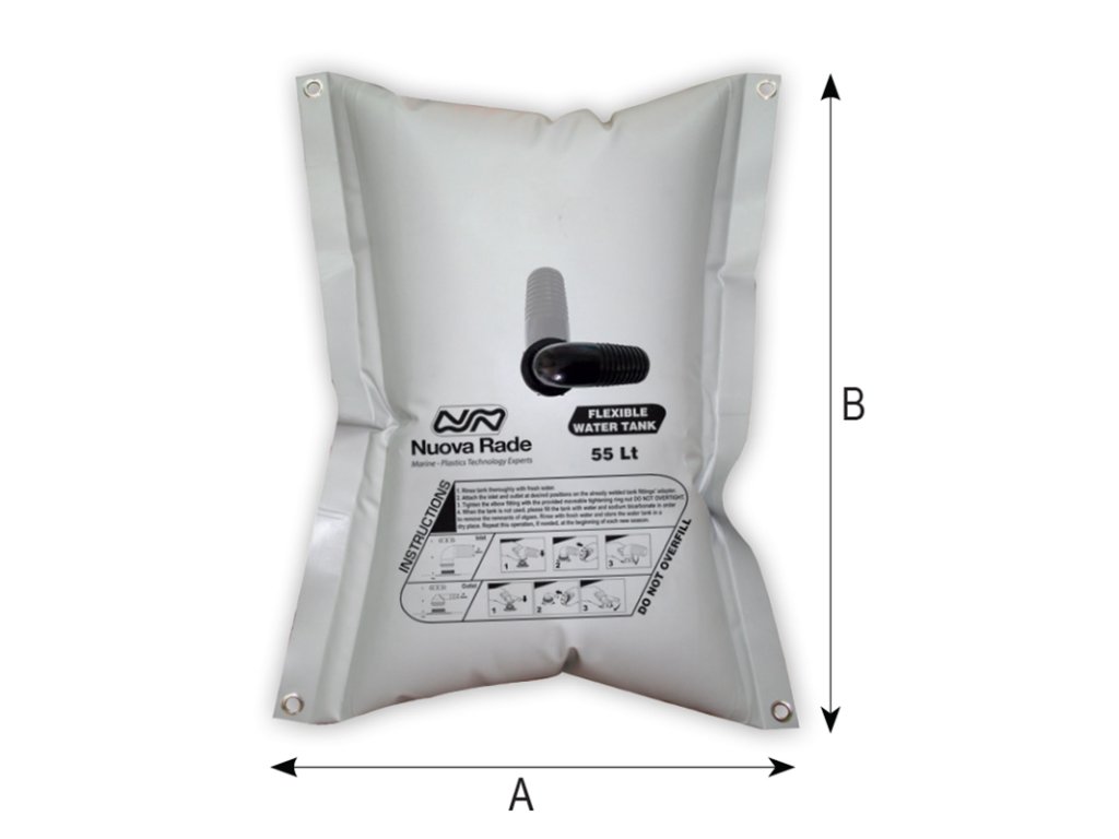 Obdélníková flexibilní nádrž na vodu, objem 150 l. Rozměr 150 (A) x 74 (B) cm.