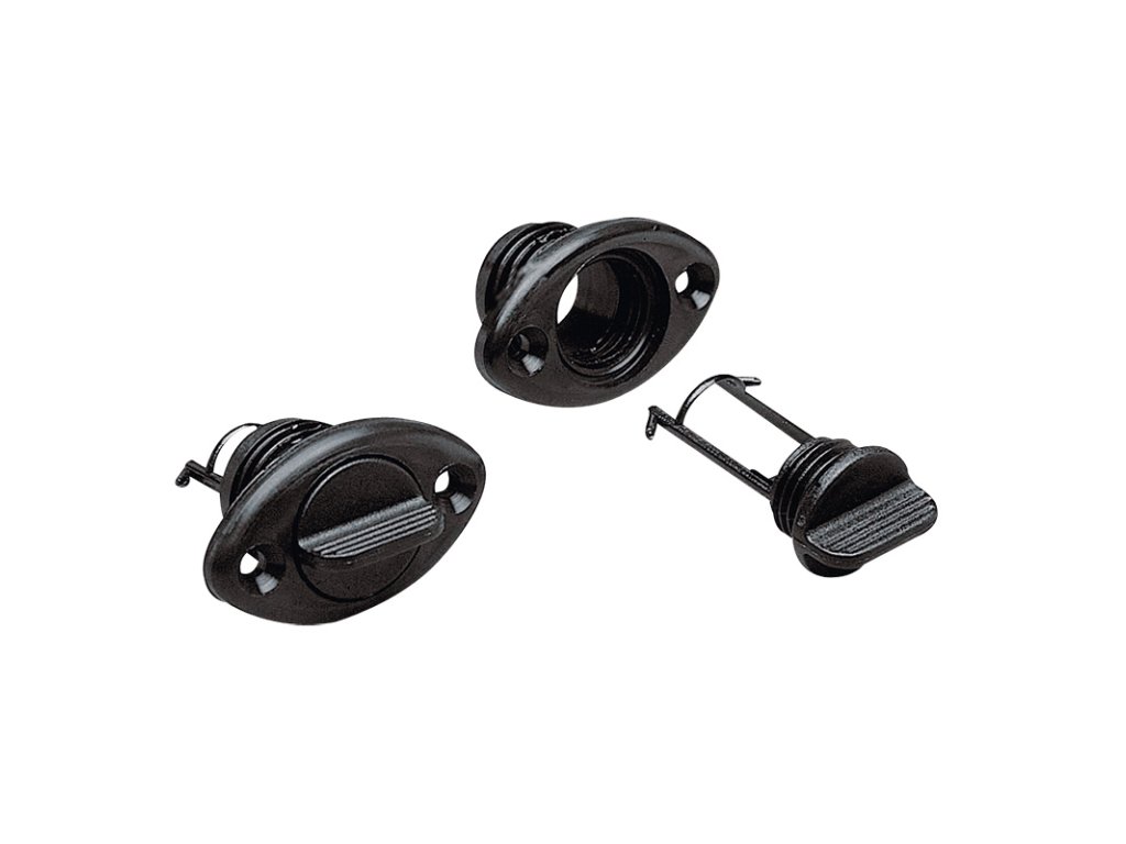 Oválná černá plastová šroubovací vypouštěcí zátka pro montážní otvor 27 mm