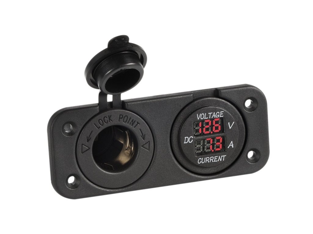 Panel s digitálním voltmetrem 8/32V, ampermetrem 0/10A a 12V zásuvkou