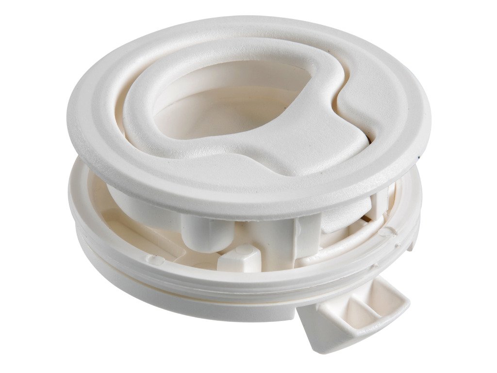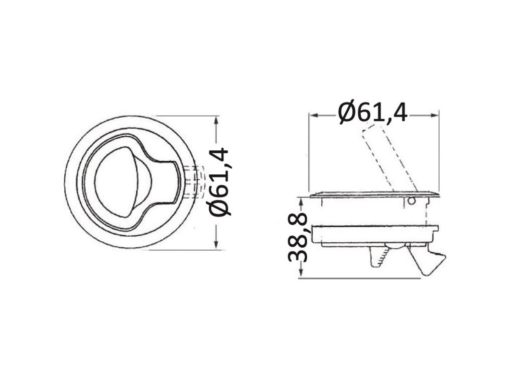 Vyrobeno z UV odolného PVC. Určeno pro tloušťku paluby 7 - 18 mm. Montážní díra je 49,6 mm. Vnější průměr zámku je 61,4 mm. Bez zamykání.Doplňkové parametry