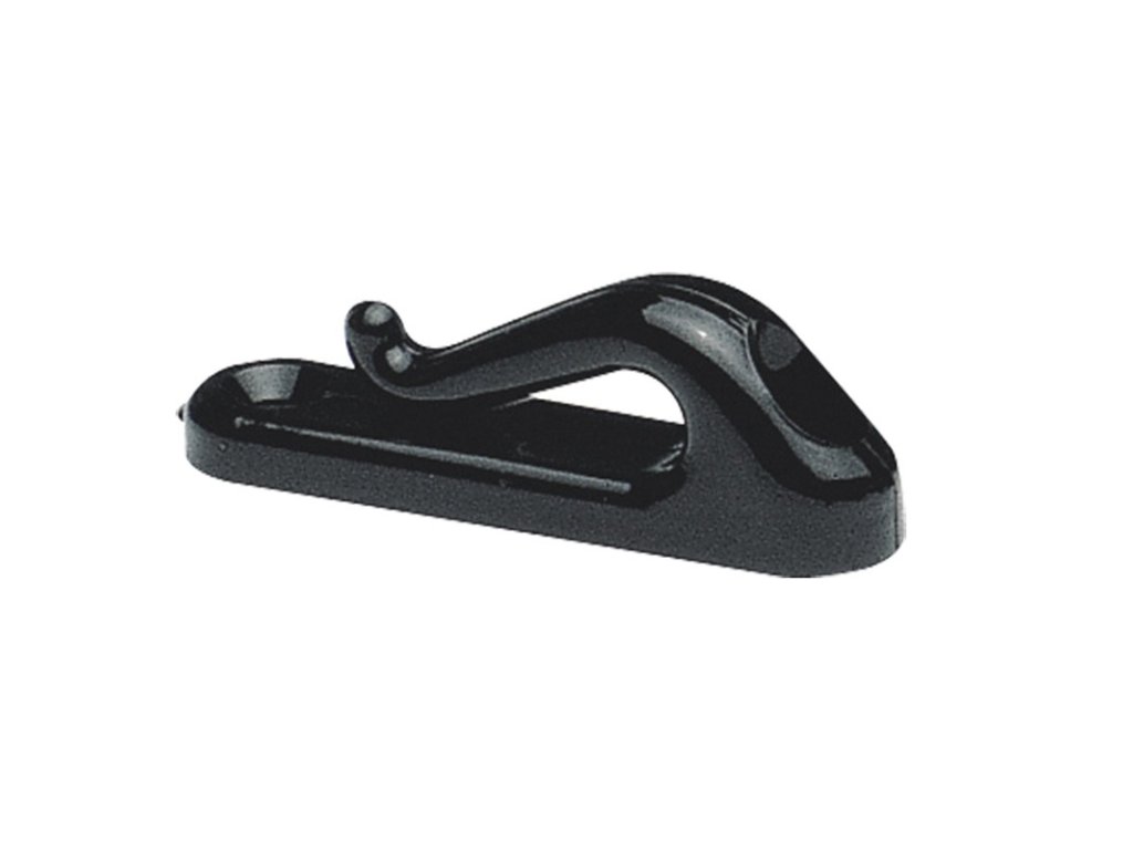 Plastový háček na spinakr v černém provedení. Pro lano o průměru maximálně 6 mm. Délka 30 mm. Rozteč šroubů 20 mm.