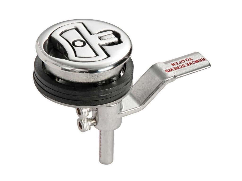 Podlahový zámek pro otevírání poklopů s integrovaným zámečkem, průměr 60 mm. Nový excentrický systém, zvednutím záklopné rukojeti se poklop uvolní, následným pootočením je poklop odemčen. Zámek je vodotěsný a vybaven vibrační vložkou. Vyrobeno z leštěné nerezové oceli AISI 316.Doplňkové parametry