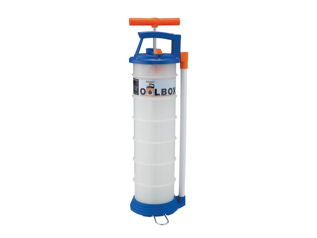 Pumpa na výměnu oleje. Určeno pro maximální teplotu oleje 100°C. Dodávána s 3 hadičkami o různých průměrech (9,8; 6,7 a 5,8 mm) pro různé otvory. Výška 65 cm, průměr 21 cm, váha 2,4 kg.