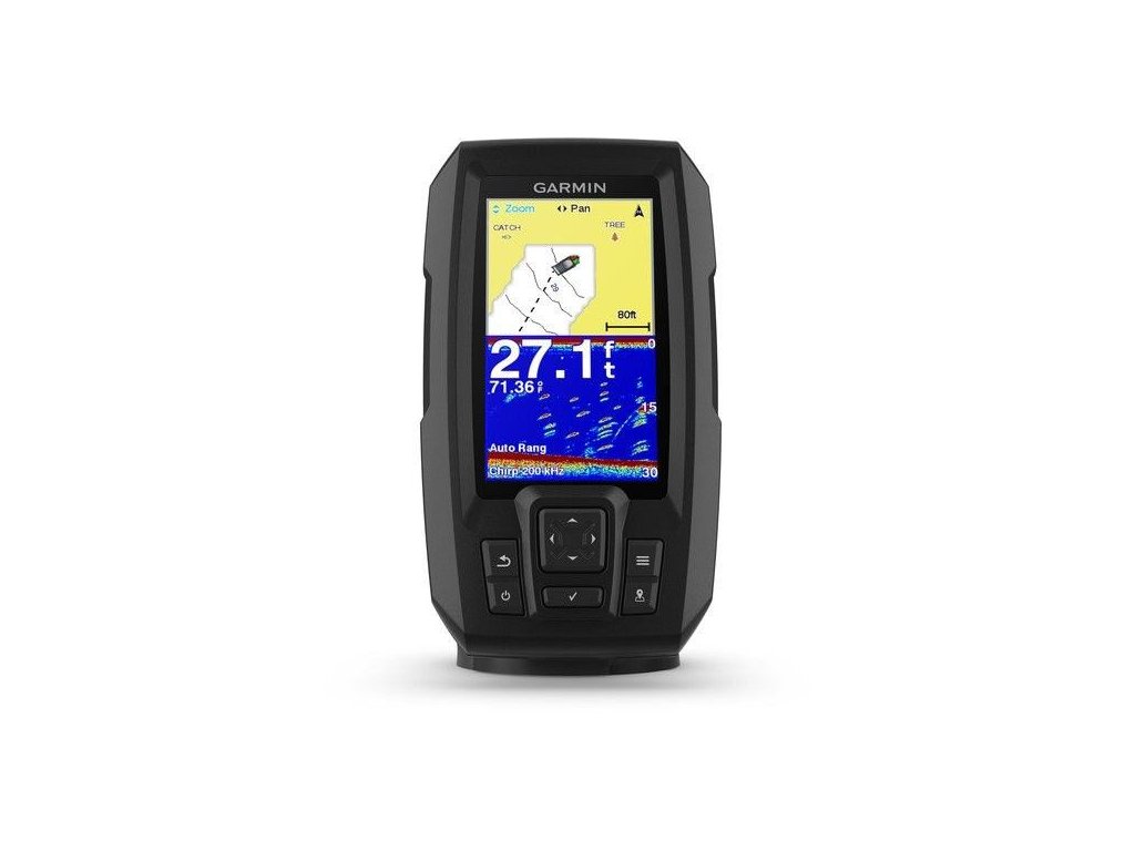 Kompaktní, jednoduchý sonar s GPS a 4,3" displejem, sondou, držákem a napájecím kabelem v ceně. Garmin Striker 4 PLUS je vybavený 4,3“ displejem (480x272 pixelů) a vestavěným GPS přijímačem. Vestavěný vysoce citlivý GPS přijímač umožňuje ukládat do paměti sonaru důležitá místa na vodní ploše (místa vnadění, nebezpečná místa, místo kotvení a pod.), zaznamenávat projetou trasu a také automaticky generovat podrobnou mapu dna pomocí funkce QuickDraw. Na uložená místa v paměti je možné se pomocí Striker 4 PLUS také jednoduše navigovat. V ceně obsažena sonarová sonda CHIRP s tradičním sonarovým zobrazením a frekvencí 55/77/200 kHz. Sonda nabízí funkce měření hloubky a teploty vody. Funkce QuickDraw pro automatické mapování dna. Funkce QuickDraw je shopna na základě plavby se zapnutým sonarem automaticky mapovat dno a data ve své paměti zaznamenat. Již během první plavby na neznámé vodní ploše se okolo vaší pozice a okolo projeté trasy začnou vykreslovat zmapované linie na dně, které mají stejnou hloubku (hloubnice). Při každé další plavbě se mapa postupně zpřesňuje a zahušťuje. Ukázka podobně vytvořené mapy je patrná na obrázku vlevo (ukázka je z mapového sonaru echoMAP, který navíc obsahuje podrobné mapy břehu a pevniny). S takto vytvořenou podrobnou mapou hloubnic se můžete při rybaření mnohem lépe orientovat a lovit ryby na nových místech s potenciálním výskytem ryb (například místa s náhlou změnou hloubky).