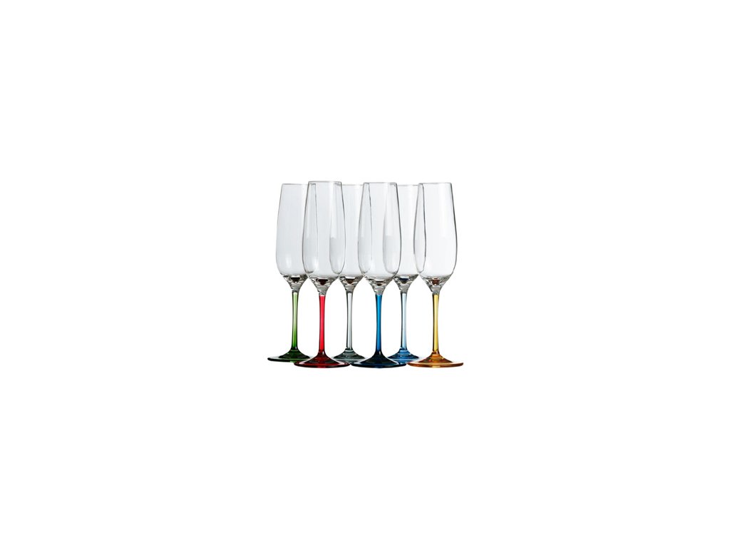 Sada 6 ks sklenic na šampaňské Party s barevnými podstavci, výška 24 cm, průměr 4,3 cm
