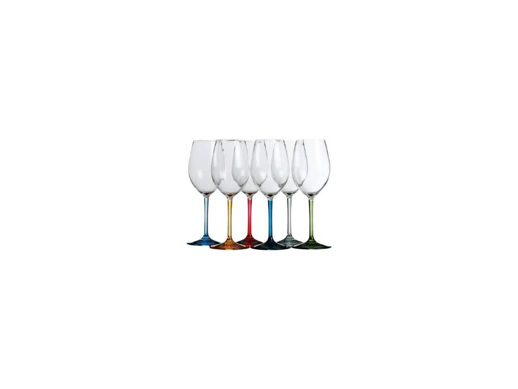 Sada 6 ks sklenic na víno Party s barevnými podstavci, výška 21,3 cm, průměr 5,5 cm