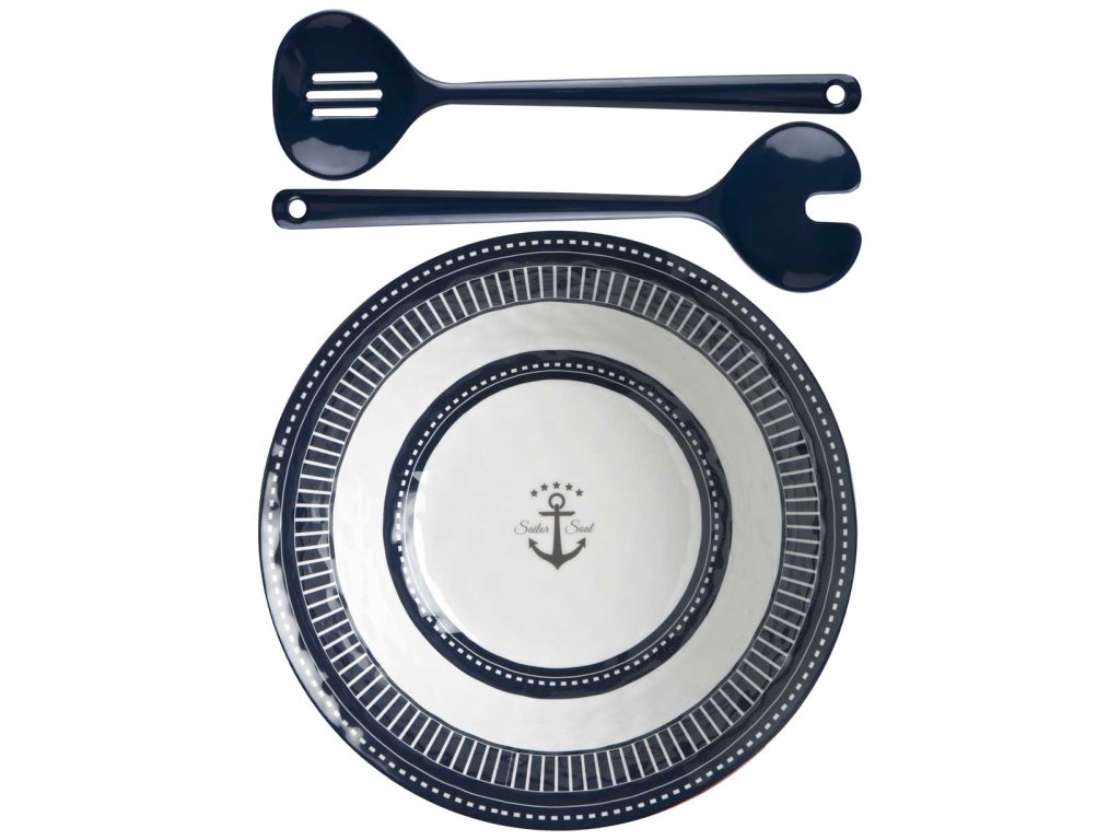 Salátová mísa Sailor s dvoudílným salátovým příborem. Materiál melamin. Mísa vhodná na saláty či těstoviny. Průměr 25 cm.Doplňkové parametry