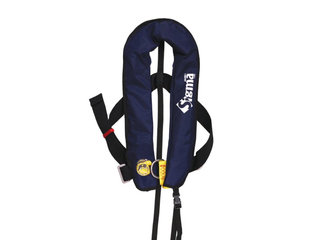 Samonafukovací modrá vesta Lalizas model Sigma 170 N s automatickým startem, D kroužkem a pásem mezi nohy.Doplňkové parametry