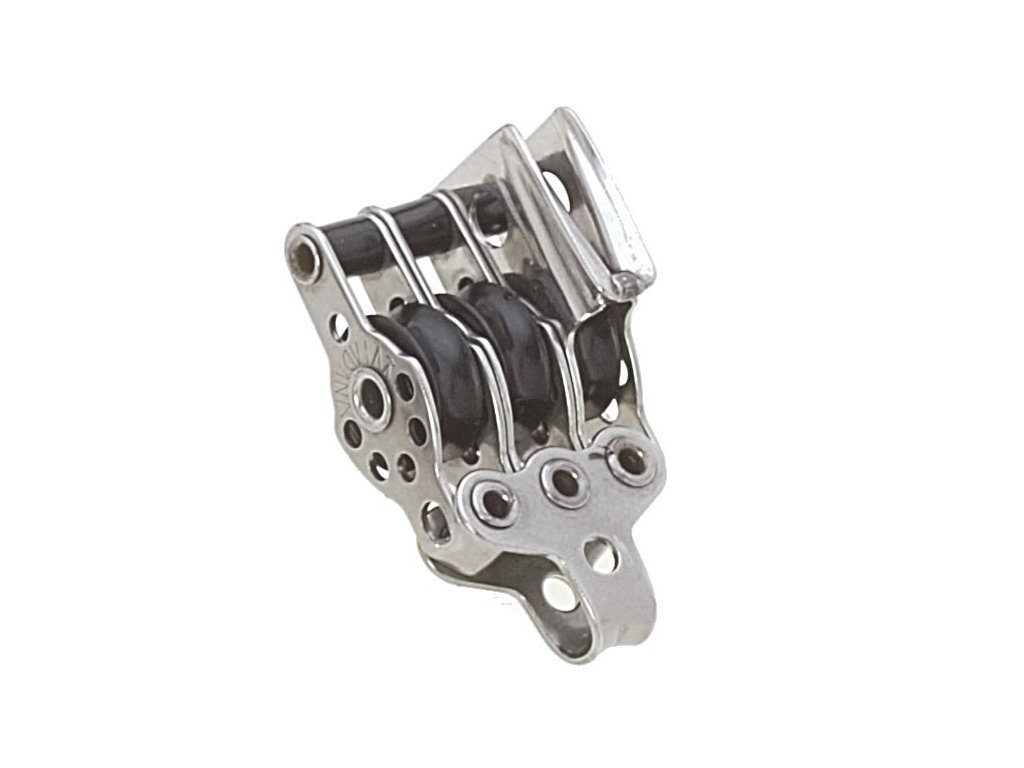 Trojitá micro kladka Viadana s třmenem, závěsem a zásekem pro lana max. 5 mm